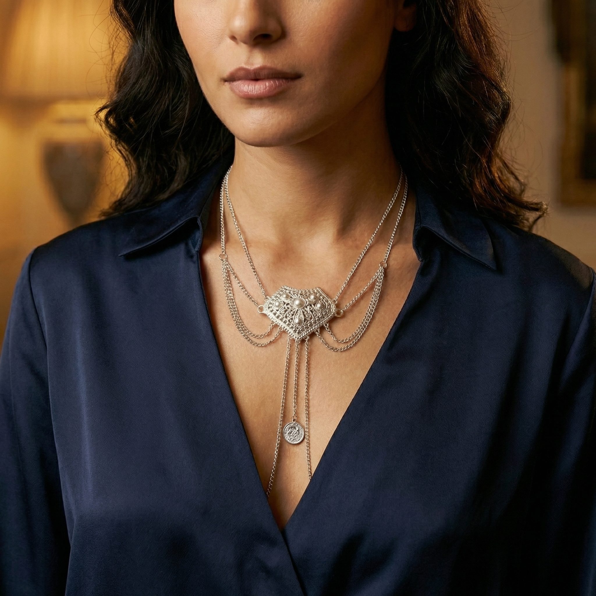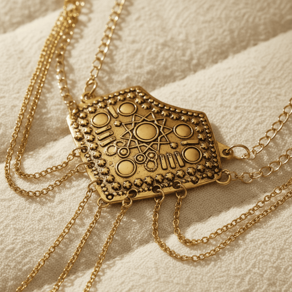 **MAINTENANCE PROTOCOL:** **Argentum (Silver Copper)** components may naturally oxidise; clean with a specialised jewellery cloth to maintain their architectural sheen. For pieces with Argentum**, avoid exposure to harsh chemicals or prolonged submersion in water to preserve the **tensile strength**. Store in original packaging to prevent surface abrasions.