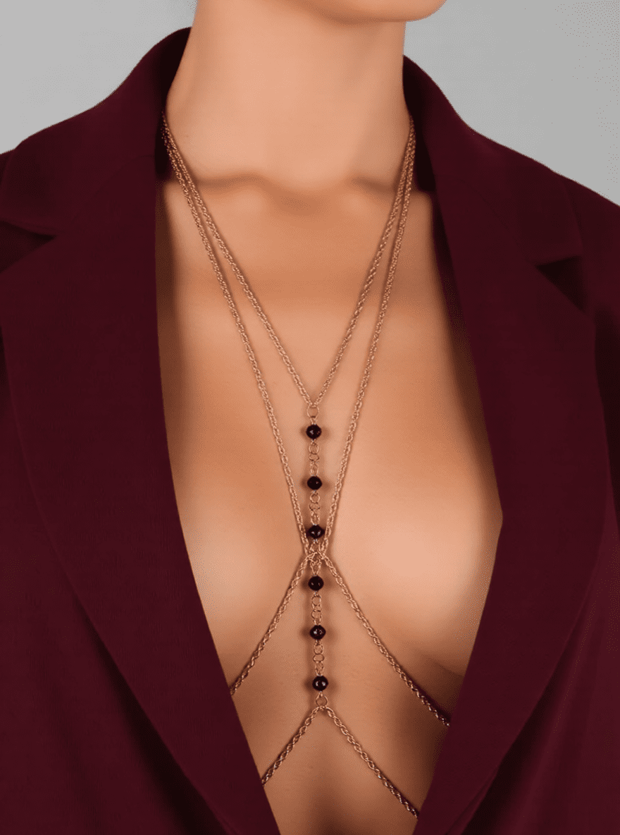 **THE ARCHITECTURAL VISION:** The INTIMATE SCULPTURE (**REPIOR | AXIS · CRYSTALS, COPPER · Intimate Sculpture**) represents a seminal study in the architecture of the human form. At **REPIOR**, we do not perceive jewellery as a mere ornament but as a structural dialogue between the dermis and architectural metallurgy. This piece has been meticulously engineered for those searching for **necklace to nipple, nipple chain, BDSM nipple clamps, non-pierced nipple rings, nipple piercing jewelry**, functioning as a specialised second skin—a metallic intervention that respects and elevates the natural geometry of the body.